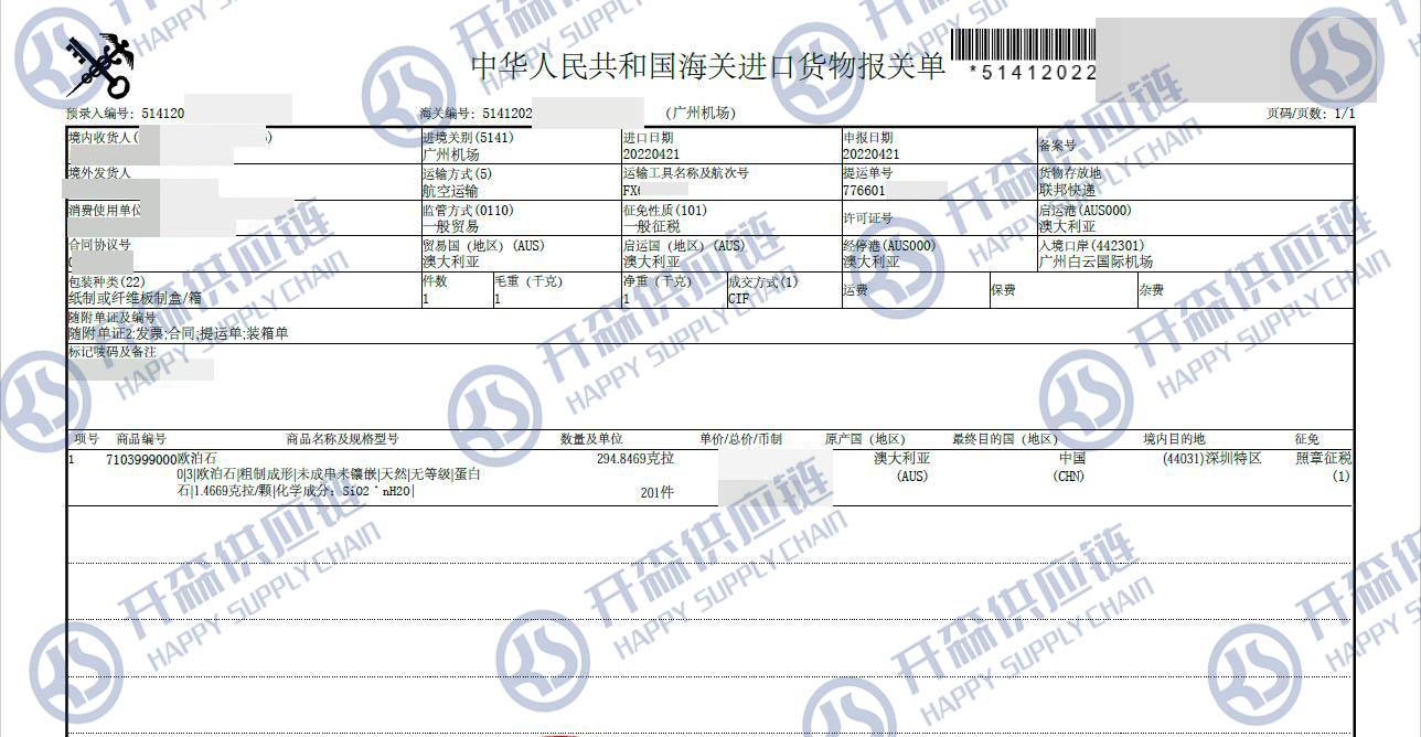 原文標題:澳大利亞歐泊石進口報關代理案例【經典案例】