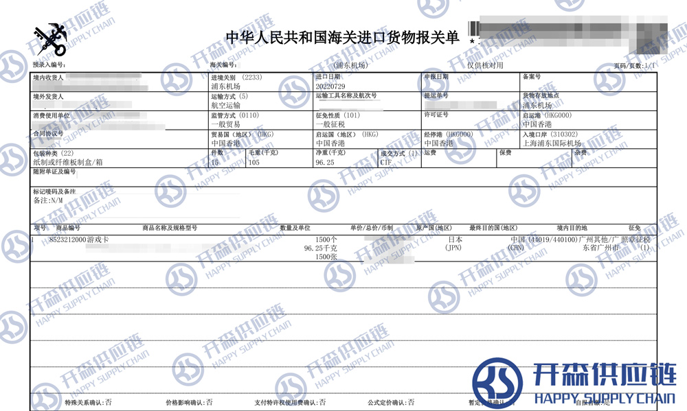 開森進口供應鏈擁有豐富的游戲機卡帶進口報關操作經驗及案例,十余年操作經驗及案例可供參考,可按需定游戲機卡帶進口方案,幫助客戶解決進口難題,快速進口清關到港到貨。