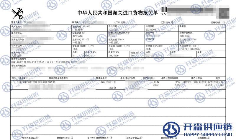 原文標題:廣州機場營養素飲料濃漿進口報關清關代理服務【經典案例】