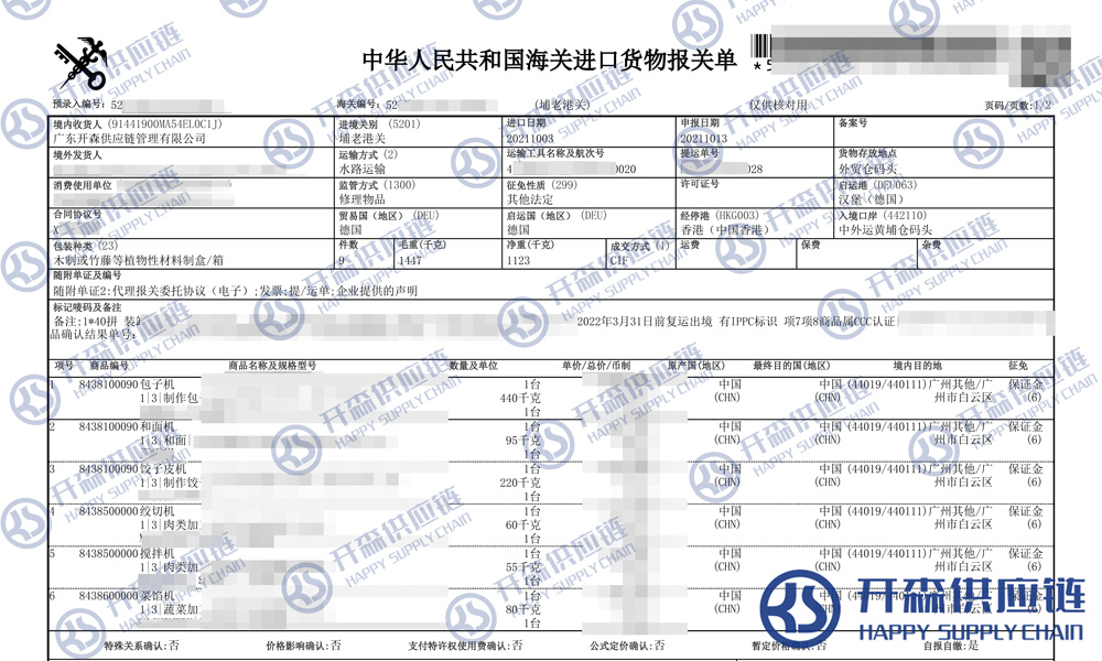 【本文結語】 上述就是攪拌機退運(返修)進出口報關清關代理服務【經典案例】的全部內容,希望能對您有所幫助,如有進口報關,進口報關代理公司,進口報關代理上任何疑問及問題可隨時在線聯系我們或撥打 18002611553,開森供應鏈擁有豐富的進口報關,進口報關代理公司,進口報關代理操作經驗及案例,10余年進口經驗為您所用,各類進口疑難都能為您一一解答及協助快速處理解決!